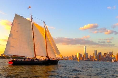 Heading south from Chelsea Piers and down the Hudson River to Battery Park, the schooner will pass by Ellis Island and sail out